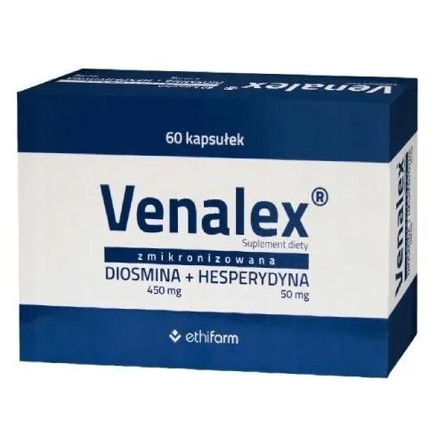 Venalex to kapsułki z diosminą i hesperydyną, których składniki łagodzą dolegliwości takie jak obrzęk i ciężkość nóg. Diosmina i hesperydyna to substancje polecane do stosowania przy problemach z krążeniem żylnym, gdyż zmniejszają przepuszczalność naczyń, redukują nadciśnienie i działają przeciwzapalnie.