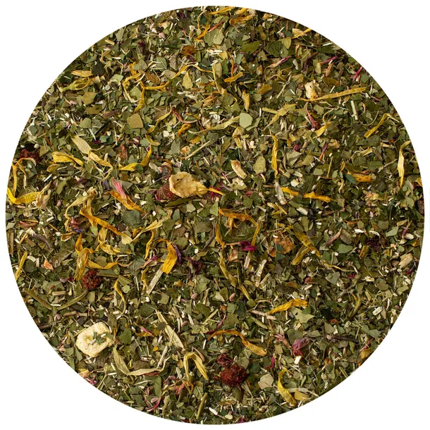 - 🌱 Składniki: 86,7% yerba mate, maliny, skórka pomarańczy, owoce jarzębiny, jagody goji, kwiaty jaśminu, płatki nagietka, czerwone płatki bławatka, naturalne aromaty