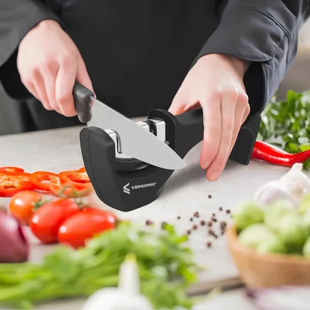 ✨Ostrzałka jest wykonana z wytrzymałych i trwałych materiałów – powłoki ceramicznej, węglików wolframu, kauczuku oraz tworzywa sztucznego, co gwarantuje jej długą żywotność. Jest to także urządzenie bardzo proste w czyszczeniu i utrzymaniu w czystości. Posiada antypoślizgowy uchwyt i powierzchnię, dzięki czemu nie ślizga się podczas pracy – ani w rękach, ani na blacie.