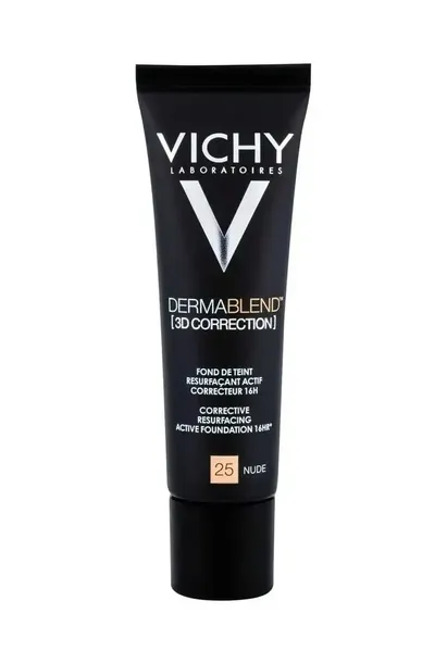 VICHY DERMABLEND [KOREKTA 3D] Podkład wyrównujący powierzchnię skóry gwarantuje doskonałe krycie aż do 16 godzin! Posiada rewolucyjną formułę stworzoną dla uzyskania efektu wyrównania cery oraz zmniejszenia widoczności jej defektów i niedoskonałości. Podkład polecany jest przez dermatologów przy problemach dermatologicznych którym towarzyszy nierówna powierzchnia skóry (np. trądzik, ślady i blizny potrądzikowe). Zastosowana innowacyjna technologia [KOREKTA 3D] została oparta na kwasie salicylowym i eperulinie, dzięki czemu podkład nie tylko skutecznie kamufluje widoczne zmiany, ale również zapewnia dodatkową pielęgnację skóry. Posiada wysoki stopień krycia, ale nie powoduje efektu maski i wysuszania cery. Gwarantuje optymalne nawilżenie oraz działa matująco. Kosmetyk hipoalergiczny, posiada SPF25. Nie powoduje powstawania zaskórniaków.