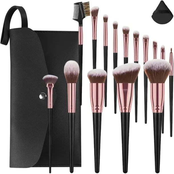 15 szt. zestaw pędzli do makijażu, dopasowana torba do przechowywania pędzli do makijażu i 2 szt. pudru