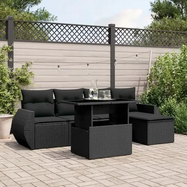 6-cz. zestaw mebli ogrodowych z poduszkami, czarny polirattan