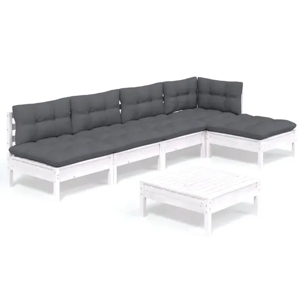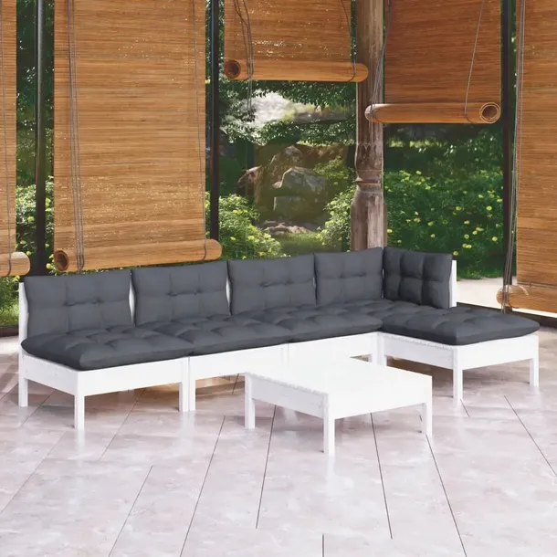 vidaXL 6-cz. zestaw wypoczynkowy do ogrodu, poduszki, biała sosna
