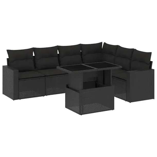 vidaXL 7-cz. zestaw wypoczynkowy do ogrodu, z poduszkami, czarny