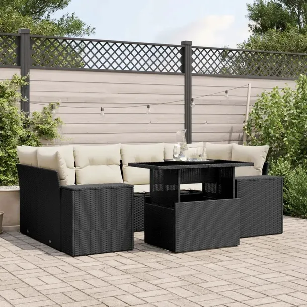 7-cz. zestaw wypoczynkowy do ogrodu, z poduszkami, czarny