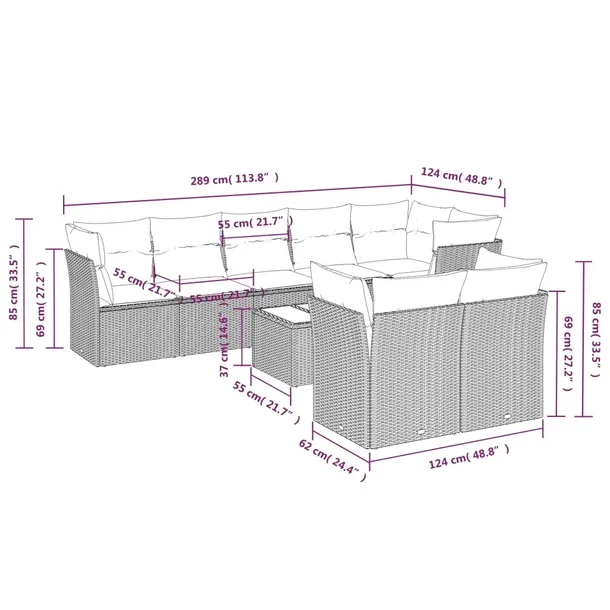 - Wymiary całkowite sofy 6-os.: 289 x 124 x 69 cm (szer. x gł. x wys.)