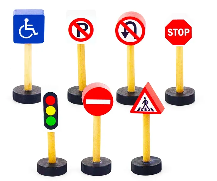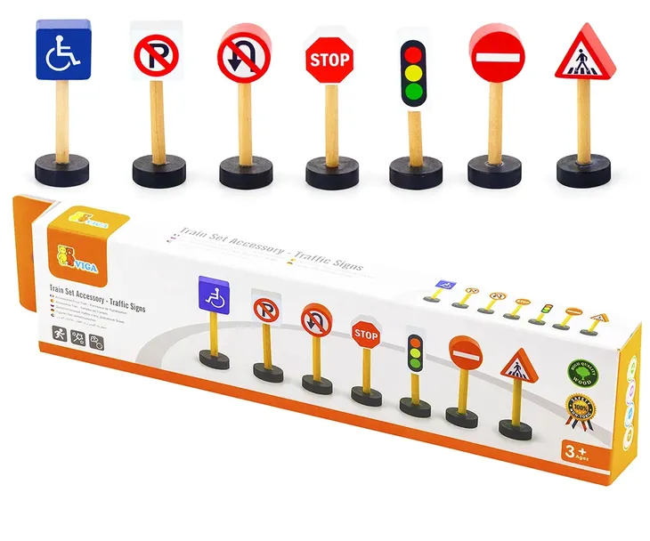 Fantastyczne akcesoria do zestawów z pociągami, a także do zestawów drogowych. Tutaj znajdziesz akcesoria dzięki, którym wzbogacisz swój obecny zestaw domowych pojazdów.W skład zestawu wchodzi 7 znaków:stopuwaga przejście dla pieszychsygnalizacja świetlnazakaz wjazduzakaz zawracaniakoniec parkingumiejsce dla niepełnosprawnychCałość wykonana została z drewna bukowego i pomalowana nietoksycznymi farbami o żywych barwach, które przyciągną wzrok oraz zachęcą do zabawy, dając jednocześnie mnóstwo radości z zabawyNaszym priorytetem jest bezpieczeństwo dzieci oraz najwyższa jakość zabawek, dbamy zatem o to, aby farby, którymi malujemy nasze zabawki, nie były toksyczne i spełniały normy bezpieczeństwa (EN71 i ASTM).Zabawka przeznaczona dla dzieci powyżej 3 roku życia.DANE TECHNICZNE:Wymiary produktu:dł: 310mm x wys: 72mm x szer: 36mmWymiary opakowania:dł: 342mm x wys: 76mm x szer: 36mm