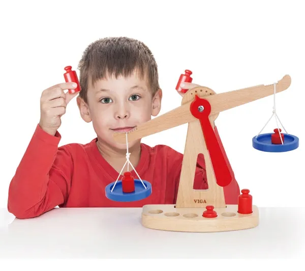 Drewniana Waga sklepowa równoważna Viga ToysTaka waga sklepowa to niezbędny element zabawy w sklep, który pomoże zważyć owoce i warzywa. To zalety, których nie zastąpi żadna inna zabawka. Kolorowa waga rozwija wyobraźnię i fantazję oraz pomoże zrozumieć wartość pieniądza i podstawy matematyki.W zestawie znajduje się: 1 stojak, 2 tacki ważące i 6 odważników w 3 różnych rozmiarach.Drewno zostało polakierowane i pomalowane bezpiecznymi dla dziecka farbami w żywe barwy, które zadowolą każdego użytkownika i dadzą mnóstwo radości z zabawy.28 x 8, 5 x 21, 5 cmod 3 lat