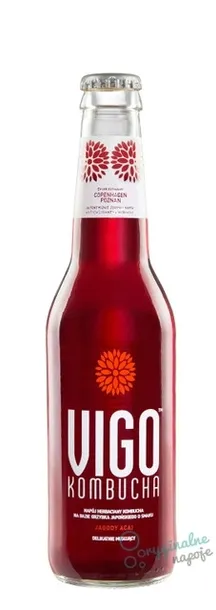 - description_extra2:Najważniejsze właściwości VIGO Kombucha Acai 330 ml:naturalny skład bez sztucznych barwników, aromatów i konserwantówekologiczne składniki z certyfikowanych uprawegzotyczny smak jagód acai z delikatnie słodkimi i kwaskowatymi nutamimusująca struktura uzyskana dzięki naturalnemu procesowi fermentacjibrak zbędnych dodatków i wypełniaczy