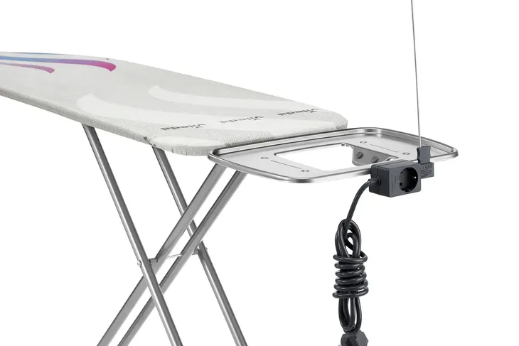 Wygodna, komfortowa i stabilna deska do prasowania Vileda Total Reflect Plus M z możliwością regulowania wysokości, z gniazdem elektrycznym oraz podstawką pod żelazko.