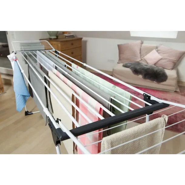 Suszarka rozkładana Vileda Infinity. Dzięki regulowanej w zakresie 118-189 cm długości świetnie nadaje się do małego i dużego prania.