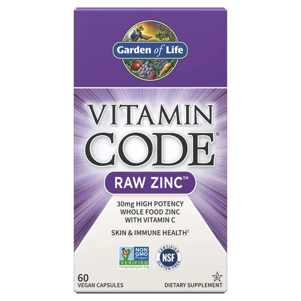 Vitamin Code RAW Zinc zawiera cynk wraz z surowymi mieszankami warzyw i owoców, chlorelli, spiruliny i torfu, a także probiotyków i enzymów trawiennych. Suplement wspomaga pracę układów immunologicznego, krwionośnego, trawiennego. Wspiera prawidłowe widzenie. RAW oznacza, że w procesie produkcji nie przekroczono temperatury 46,1 °C, pozwalając tym samym zachować więcej substancji odżywczych.