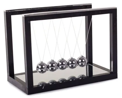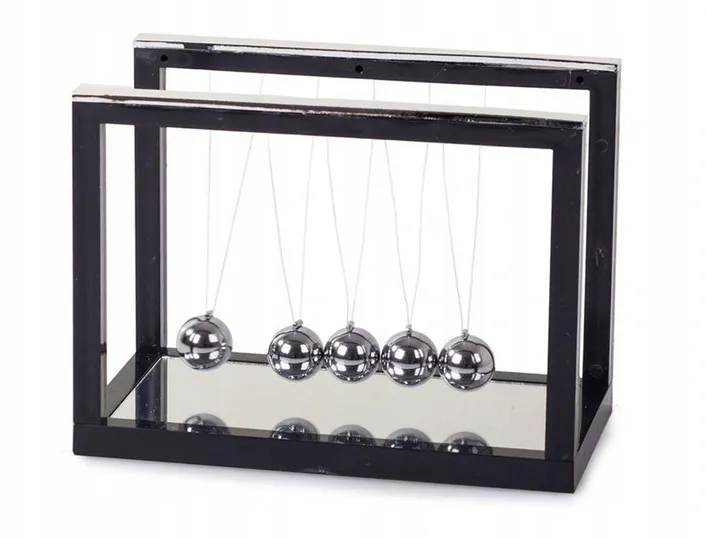 Wahadło Newtona to niesamowity gadżet przedstawiający działanie prawa fizyki - prawa zachowania pędu i energii. Gdy jedną kulkę odciągniemy i puścimy, uderzy w pozostałe, a ostatnia kulka odskoczy na prawie taką samą wysokość. Dzieje się tak, ponieważ zderzenia kulek są sprężyste i zostaje zachowana ich energia kinetyczna oraz pęd. Specyfikacja techniczna: