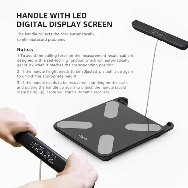 FIAR Smart Body Fat Scale PRO, do pomiaru w domu: Ta ośmioelektrodowa waga do pomiaru tkanki tłuszczowej uzyskuje i analizuje rzeczywiste dane dotyczące składu ciała poprzez bezpośredni pomiar kończyn i tułowia, a nie poprzez szacunkową formułę na podstawie płci i wiek. Wyniki pomiarów są dokładniejsze i bardziej wszechstronne niż wyniki uzyskiwane w przypadku tradycyjnych wag