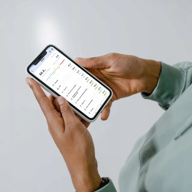 ✅ Analiza składu ciała – sprawdź BMI, procent tkanki tłuszczowej, masę mięśniową, zawartość wody, masę kostną i BMR.