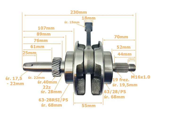 Wał korbowy wykonany z najwyżej jakości materiałów. Wykonanie gwarantuje długie i bezawaryjne użytkowanie. Wał idealnie nadaje się jako zamiennik oryginału, jest wyważony i gotowy do montażu.