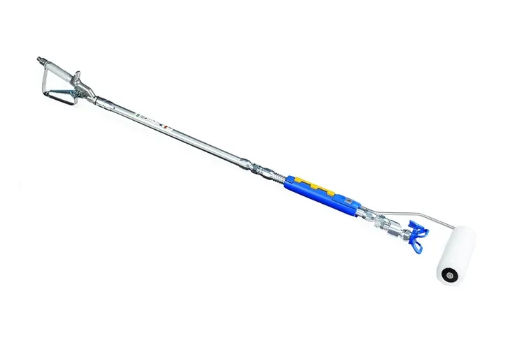 Lekkie i przenośne urządzenie JetRoller łączy pistolet malarski, przedłużkę natryskową i wałek ręczny w jednym, kompletnym zestawie. Pasuje do wszystkich agregatów malarskich airless i pozwala oszczędzać czas, stanowiąc idealny dodatek do każdego arsenału malarskiego. JetRoller to połączenie efektu wałka i natrysku w jednym ruchu, co oszczędza czas i robociznę w przypadku zadań obejmujących natrysk i wtórne rozprowadzanie farby wałkiem. JetRoller jest idealny do szorstkich lub porowatych powierzchni, minimalizuje roznoszenie farby i zapewnia wykończenie jednolitej jakości.