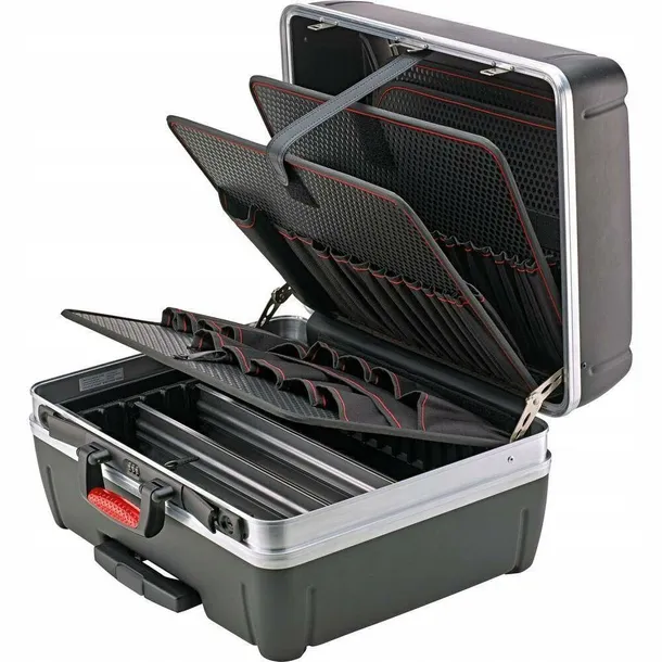 Wykonanie: z bardzo mocnego tworzywa HDPE w kolorze czarnym, z wytrzymałymi ściankami ze specjalnego tworzywa sztucznego, odpornego na zarysowania, odkształcenia i deformacje, działanie wilgoci, smarów i chemikaliów, stabilny, 3-segmentowy uchwyt teleskopowy, powlekany proszkowo i lekko toczące się kółka. Wysokość części spodniej 88 mm, z możliwością dowolnego podziału wnętrza. Mocne, stabilne zawiasy, mechanizm utrzymujący walizkę w pozycji otwartej, wytrzymałość obciążeniowa walizki do 35 kg, podwójna rama aluminiowa z zabezpieczeniem przeciwwstrząsowym. Bardzo stabilna, ze zintegrowanymi ślizgaczami zabezpieczającymi spód. Zamykana na 2 klawiszowe zamki naciskowe i zamek szyfrowy.