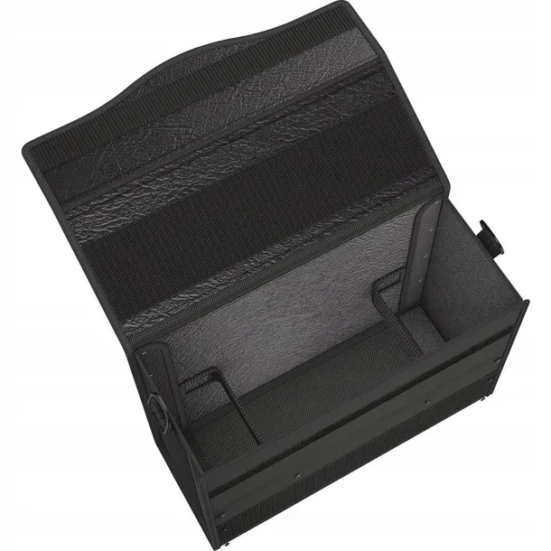 Duża torba na ramię z wyściełanym, regulowanym, odpinanym paskiem na ramię i uchwytem do przenoszenia. Strefy z rzepami wewnątrz i na zewnątrz służące do mocowania kompatybilnych toreb i etui.