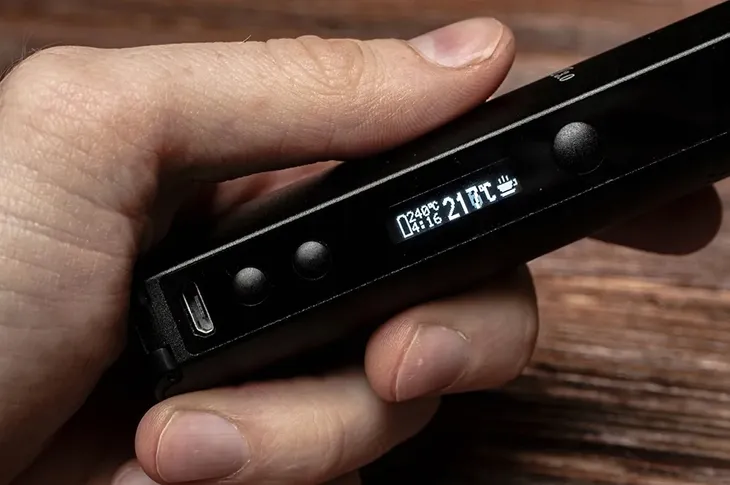 Wyświetlacz OLED ułatwia precyzyjne ustawienie temperatury, w krokach co jeden stopień. Na wyświetlaczu można zobaczyć wybraną temperaturę regulowaną w zakresie od 100 ° C do 240 ° C. Obserwuj wzrost temperatury i poczekaj na wibracje wskażą osiągnięcie wybranej temperatury. Możesz także sprawdzić aktualny stan baterii na wyświetlaczu.