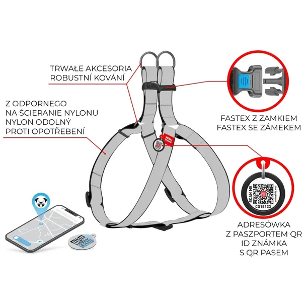 Seria szelki z nylonu WAUDOG Nylonz paszportem QR wykonane z wysokiej jakości, trwałego nylonu.