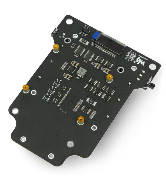 Zestaw do budowy 4 kołowej platformy robota wyścigowego PiRacer DonkeyCar, opartej o minikomputer Raspberry Pi. Robot pozwala wykrywać obiekty i poruszać się autonomicznie. Został wyposażony w kamerę, 4-kołowy napęd DC, skrętną przednią oś za pomocą serwa oraz płytkę główną z wyświetlaczem OLED. Platforma zasilana trzema akumulatorami Li-Ion 18650.