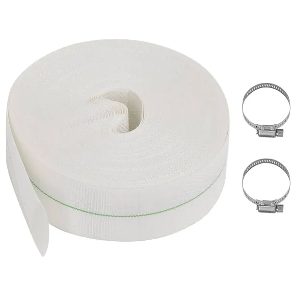 - Wysokiej jakości materiał: płaski wąż jest wzmocniony warstwami spiralnymi i podłużnymi nićmi poliestrowymi, co zapewnia wytrzymałość, sprężystość i elastyczność.