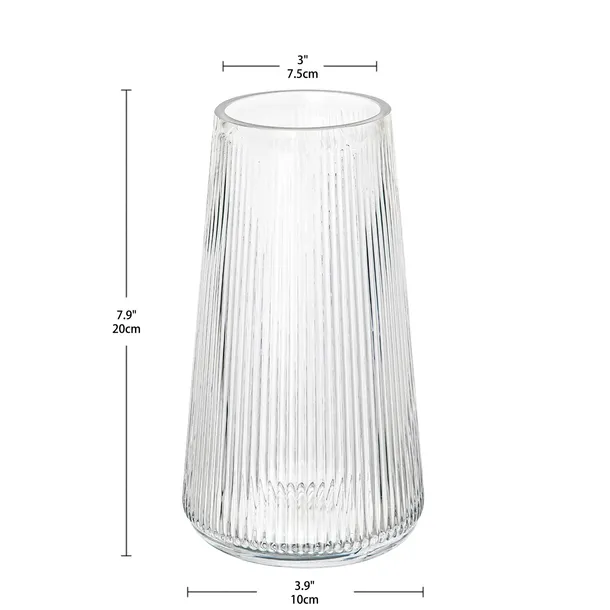 Dekovase Glas Nowoczesne Wazy z Rylcami Dekoracyjna Waza na Kwiaty w Stylu Dekoracji Stołowej na Wesele, Biuro, Dekorację Kuchenną, Wysokość ok. 20 cm