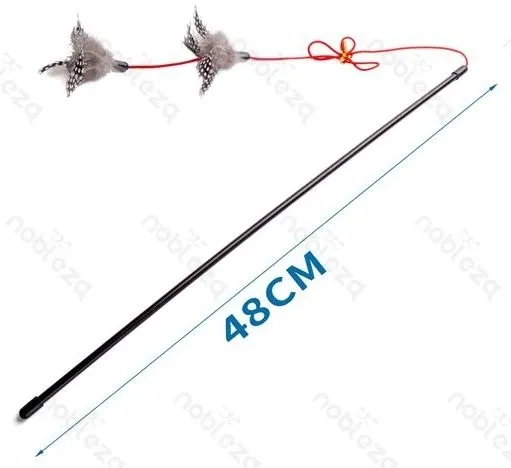 Wędka dla kota z piórkami to doskonała rozrywka i sposób na pobudzenie instynktu łowieckiego u Twojego przyjaciela, a dodatkowo zwiększy jego koncentrację. Zabawka składa się z plastikowego, solidnego uchwytu o długości 48cm zakończoną naturalnymi piórkami.