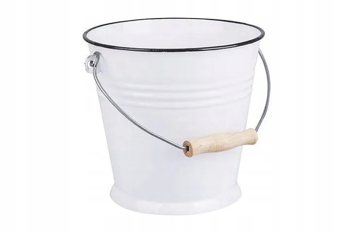 - Wiadro z rączką wykonane z blachy stalowej pokrytej emalią wewnątrz i na zewnątrz