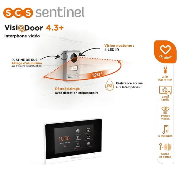 SCS Sentinel jest zaangażowany w osoby, które zapewni Ci produkty techniczne i wysokiej jakości w celu uproszczenia codziennego życia. Naszym priorytetem jest oferowanie innowacyjnych rozwiązań komfortu i bezpieczeństwa dla Ciebie i Twojego domu. Nasza szeroka gama łatwych przedmiotów technicznych doskonale spełni Twoje oczekiwania. Oferujemy automatyzmy huśtania się i przesuwanych bram dla bramy elektrycznej, silniki do bramy garażowej, interkomu audio i wideo, wiórów przewodowych i bezprzewodowych, alarmów, a także zestawów do monitorowania wideo. Dynamizmu i wiedzy specjalistycznej są słowami naszej marki. Nasze intercom Video 2 stopnie Visiodoor 4.3+ przyniesie ci poczucie bezpieczeństwa, kontrolując dostęp do domu lub miejsca pracy. Składa się z wewnętrznego wideo z 4,3 cala dodatkowego płaskiego ekranu dotykowego i platyny ulicznej z uproszczonym połączeniem bez polaryzacji. Instalacja i wykorzystanie naszego produktu jest zabawą dla dzieci! Ten kompletny zestaw o dużej solidności obejmuje 1 platynę na szerokim kąt z zintegrowanym daszkiem, 1 dodatkowy monitorze 4,3 '', 11 cm z ekranem dotykowym, 1 podparcie ściany, 1 adapter