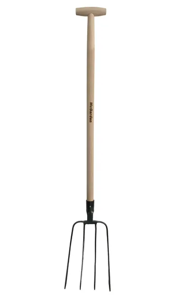 Widły ( gable) gospodarcze do przerzucania kompostu, obornika, cienkie zęby, stal węglowa hartowana do 46 HRC , trzon drewniany – bukowy typ T-100
