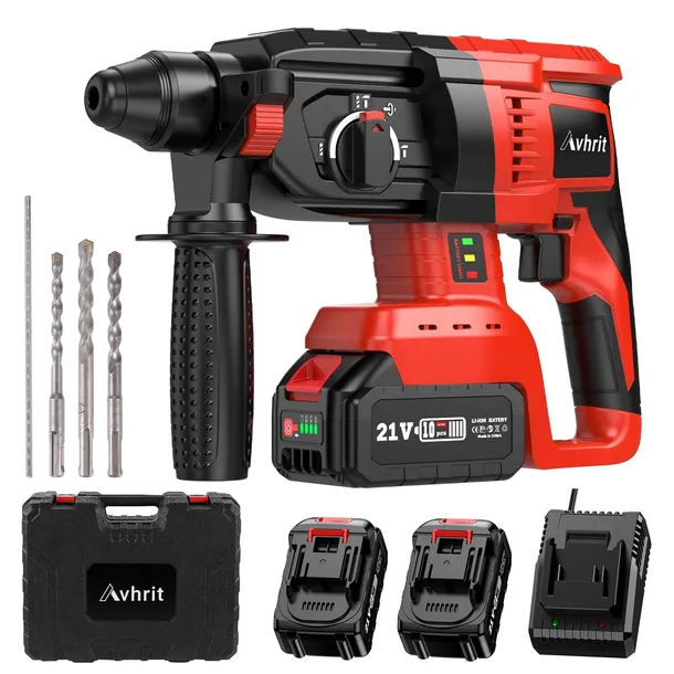 Avhrit 2025 Zaktualizowany akumulatorowy młot udarowy, z 2 przenośnymi akumulatorami litowymi (21V), bezszczotkowym silnikiem, 3 funkcjami akumulatorowej wiertarki udarowej do użytku domowego i profesjonalnych prac budowlanych