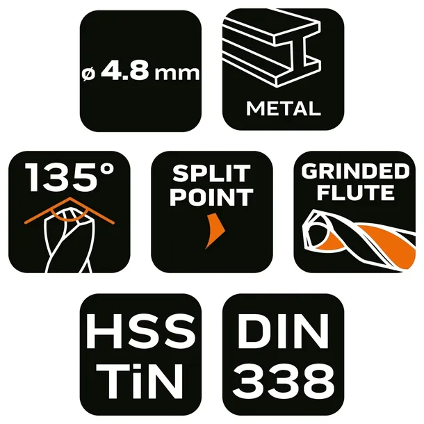 Wiertło do metalu HSS-TiN, 4.8 mm