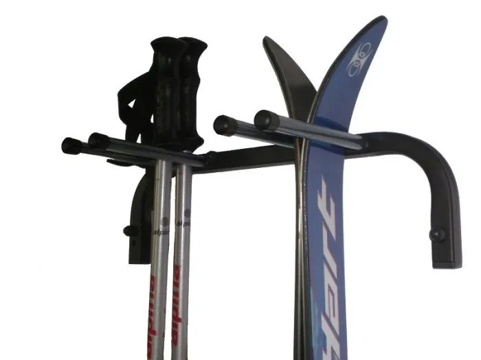 Wieszak na narty NU2CSłuży do zawieszenia dwóch par nart. Podstawa wieszaka wykonana jest z profilu stalowego, a ramiona z pręta. Całość pomalowana jest lakierem proszkowym na czarny mat. Dobór odpowiednich materiałów powoduje, że wieszak jest bardzo stabilny i estetycznie wykonany. Posłuży wiele lat i zapewni porządek w mieszkaniu.Zalety:łatwy w montażukońce zabezpieczone nakładkamikołki montażowe w kpl.estetycznie wykonanywyrób polskiDane techniczne:nośność: 40kgprzeznaczenie: 2 pary nartprześwit ramion: 28 mmdługość ramion: 150 mmszerokość całkowita: 410mmwaga: 1 kgkolor: czarnyproducent: OBRAMET Dodatkowe zdjęcia: ...