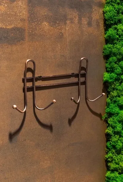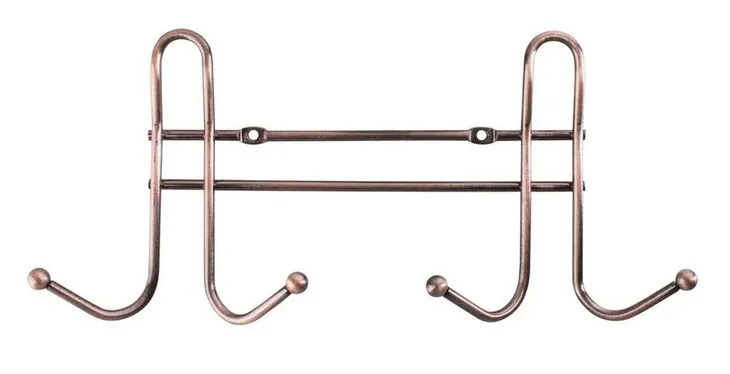 Miedziany wieszak ścienny z czterema haczykami do zawieszania ręczników, szlafroków czy ubrań. Został precyzyjnie wykonany z solidnej i masywnej stali malowanej na kolor antycznej miedzi. To idealny dodatek do łazienki w stylu rustykalnym, vintage lub retro. Wieszak na ręczniki montowany jest do ściany za pomocą śrubek, które znajdują się w zestawie.