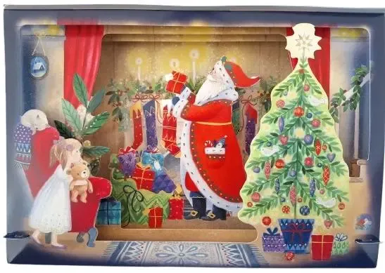 To prawdziwa perełka wśród książeczek bożonarodzeniowych Zachwyca nie tylko treścią, ale przede wszystkim swoją niezwykle dopracowaną i efektowną oprawą graficzną. Już sama okładka przyciąga wzrok – pokryta złotymi, połyskującymi gwiazdkami i eleganckim liternictwem, sprawia wrażenie wyjątkowego, świątecznego prezentu. Jest niczym bombonierka pełna niespodzianek – piękna, klimatyczna i dopracowana w każdym szczególe. Po otwarciu książki świąteczna magia ożywa – trójwymiarowa scenka z Mikołajem i dziećmi wita czytelnika już na pierwszej rozkładówce. Dalej czeka ciepła, pięknie zilustrowana opowieść o wyjątkowej wigilijnej nocy, pełna uroku i świątecznej atmosfery. To idealna książka do wspólnego czytania w grudniowe wieczory.