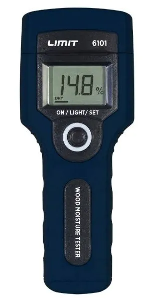 Łatwy w użyciu, ręczny miernik zawartości wilgoci w drewnie, w którym pomiaru dokonuje się przez wciśnięcie w materiał dwóch kolców pomiarowych. Wynik pomiaru podawany jest bezpośrednio na wyświetlaczu LCD. Pokrywa ochronna zawiera również wyposażenie do kalibracji, zapewniające utrzymanie odpowiedniej dokładności pomiarów. Przyrząd służy do pomiarów pięciu grup materiałów, które się łatwo wybiera, stosownie do rodzaju mierzonego drewna. Wyświetlacz z cyframi o wysokości 12 mm i podświetleniem automatycznie wyłączanym po 30 s. Przeznaczony dla stolarzy, inspektorów budowlanych, pracowników drzewnych oraz właścicieli domów. Bateria w załączeniu.