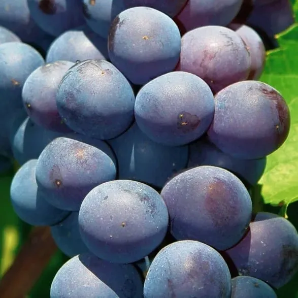 Owoce: Grona duże luźno osadzone. Owoce są okrągłe, średniej wielkości, skórka gruba, ciemnogranatowa. Miąższ ciemny, soczysty, słodki. Bogate są m.in. w potas, wapń, żelazo, magnez, cynk, miedź, bor. Owocuje obficie w czwartym-piątym roku po posadzeniu, we wcześniejszych latach mogą pojawić się pojedyncze owoce.