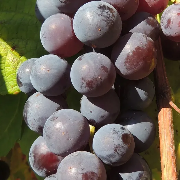 Owoce: Jagody są średnie, kuliste, koloru granatowego, z charakterystycznym nalotem. O smacznym, słodkim miąższu, o aromacie truskawki. Grona lekko wydłużone, średniej wielkości, cylindryczne, osiągają 200-300 g.