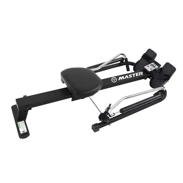 Wioślarz MASTER V-100 jest idealny na wzmocnienie mięśni na całym ciele. Wygodne siedzisko, regulowane pasy mocujące stopy oraz hydrauliczne amortyzatory z regulacją oporu zapewniają maksymalny komfort użytkowania. Komputer wyświetla czas, ilość powtórzeń i spalone kalorie. Urządzenie jest idealne do treningów w domu.