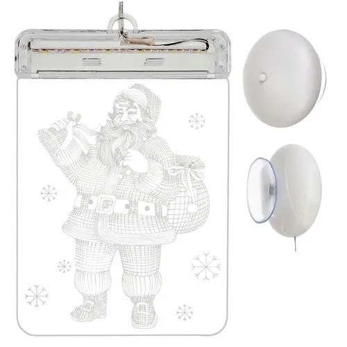 - SPECYFIKACJA - barwa światła: biała ciepła; wzór na witrażu: Mikołaj; ilość lampek w taśmie LED: 6; zasilanie baterie: 3 x AAA (brak w zestawie) wymiary: 17 x 11,5 x 1,5 cm; długość kabla: 19 cm; wymiary opakowania: 18 x 12,5 x 4,5 cm; waga: 108 g; waga w opakowaniu: 121 g.