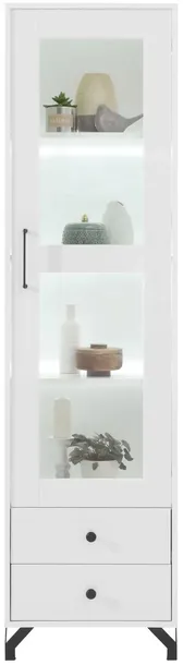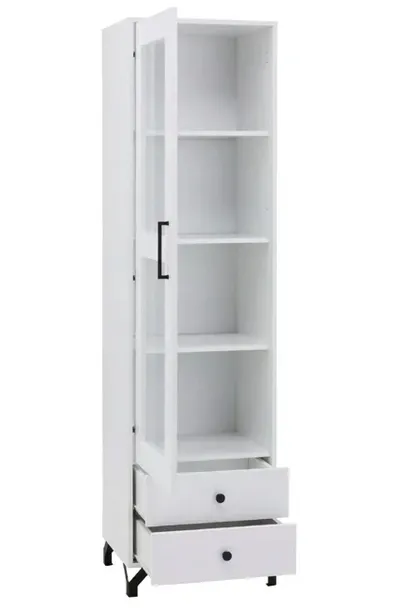 Meble systemowe GIZA to idealna propozycja dla stonowanych wnętrz. Czysto biała tafla frontów w połysku wraz z charakterystycznymi czarnymi uchwytami i nóżkami wyróżni się na tle całości. Seria wpasuje się idealnie do salonu, jak i pokoju młodzieżowego ze względu na 13 dostępnych brył, w których skład wchodzą witryny, biurko lub nawet łóżko.