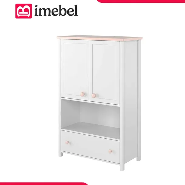 LYSSA to funkcjonalna witryna z dwiema szafkami i jedną szufladą – idealna do pokoju młodzieżowego lub garderoby. Dzięki nowoczesnemu połączeniu koloru biały alpejski i różowy doskonale wpisuje się w modną aranżację wnętrza.