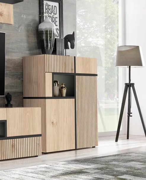 CROSS to kolekcja, która doskonale sprawdzi się w salonie, jadalni czy pokoju dziennym. Praktyczne rozwiązania, takie jak liczne schowki, przeszklone witryny i miejsce na sprzęt RTV, zapewniają wygodę użytkowania na co dzień.