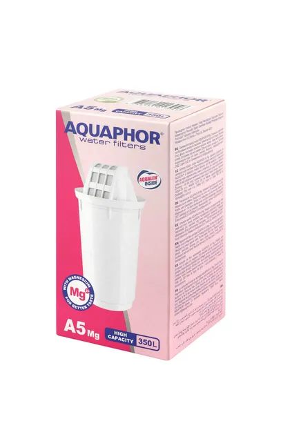Wkład filtrujący AQUAPHOR A5 Mg zapewnia dłuższą ochronę przed zanieczyszczeniami, występującymi w wodzie kranowej, która jest silnie zanieczyszczona rdzą, piaskiem i mułem. Zawiera więcej sorbentu dla wydłużonego okresu użytkowania filtra o wydajności 350 litrów. Wkład A5 Mg wzbogaca wodę w magnez nawet do 30% zalecanej dziennej wartości.Pasuje do dzbanków filtrujących AQUAPHOR z wkładami B5.