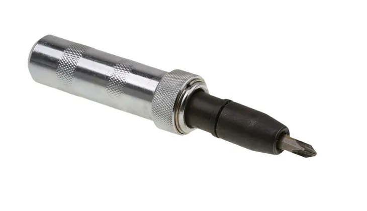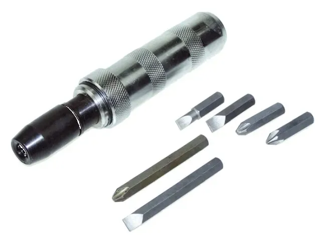 - Wkrętak posiada praktyczną, metalową rączkę, która chroni dłoń przed urazem podczas uderzenia.
