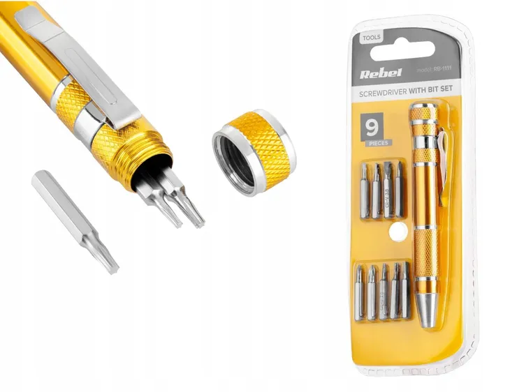 Wkrętak z bitami Rebel 9 elementów