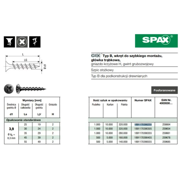 Wkręty Spax GIX-B 3,9x35 (1000) do drewna