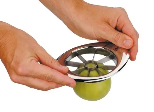 Jeśli należysz do osób, które bez owoców nie mogą żyć. Albo nie wyobrażasz sobie dnia bez zjedzenia jabłka, ta krajalnica pozwoli na wygodne przygotowanie jabłka bezpośrednio do jedzenia. Dzieli owoc na 8 równych części, dodatkowo usuwa środek z pestkami. Pozwala na przygotowanie owocu bez użycia dużej ilości siły. Jest niezwykle trwała, wykonana z polerowanej stali nierdzewnej Cromargan , która jest odporna na rdzę, zużycie, zarysowania oraz działanie kwasów organicznych. Nawet podczas intensywnego użytkowania będzie długo wyglądała jak nowa.